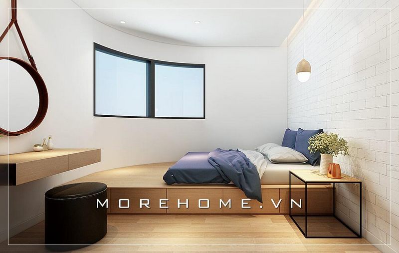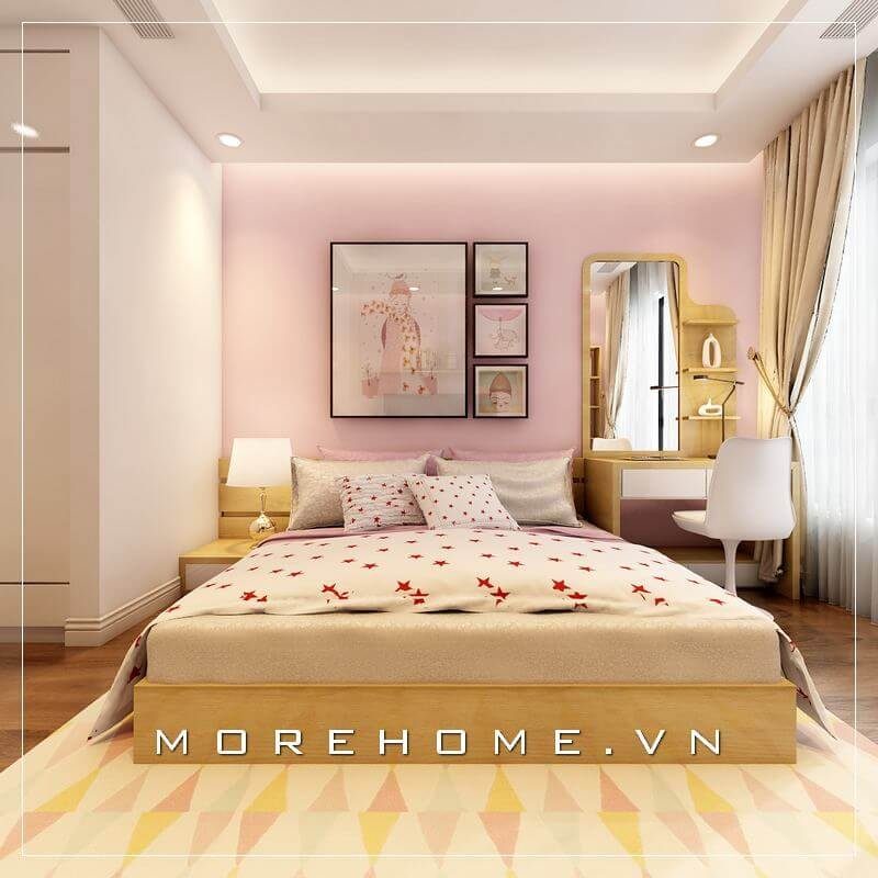 Giường ngủ gỗ công nghiệp dành cho phòng ngủ 2 người, phần tab liền kề giúp cho gia chủ có thêm nhiều không gian lưu trữ vật dụng cá nhân của mình