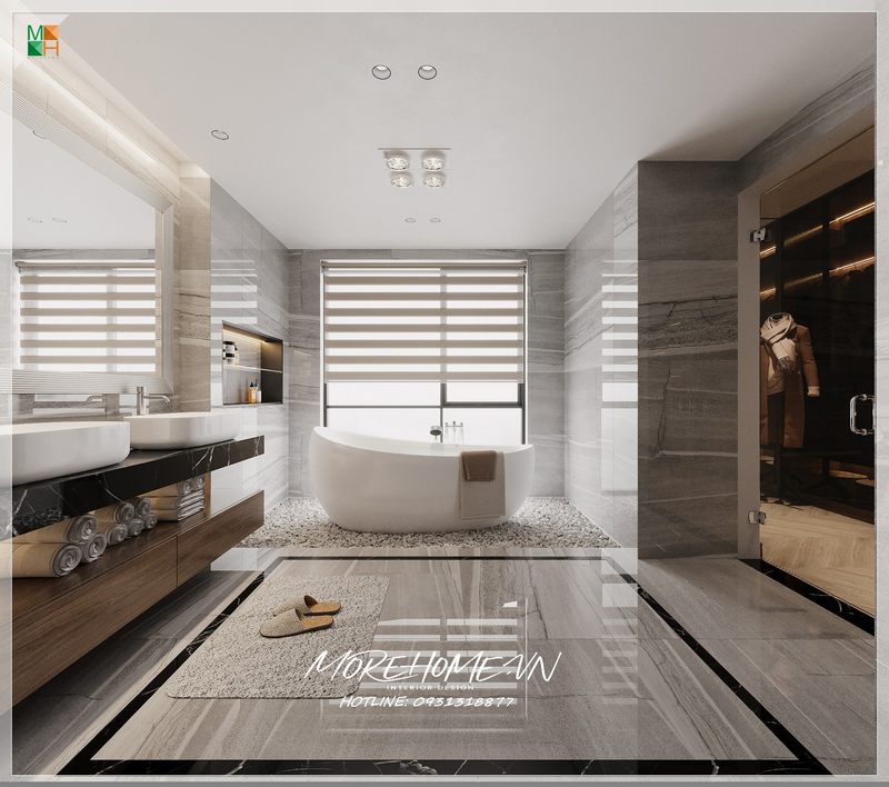 Thiết kế nội thất nhà tắm biệt thự, chung cư, nhà phố sang trọng hơn với gạch ốp tường và gạch lát sàn giả vân đá cao cấp.