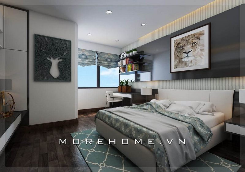 Giường ngủ phòng Master được thiết kế theo phong cách hiện đại, trẻ trung, gam màu nâu trầm chủ đạo gợi lên sự sang trọng và thoải mái cho cả không gian căn phòng