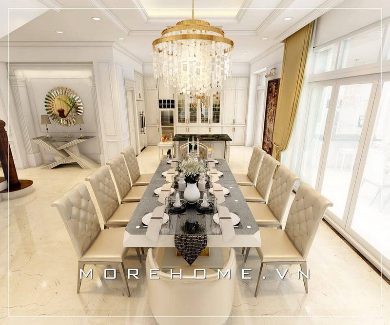 Mẫu bàn ăn cao cấp, đầy sang trọng và tiện lợi sẽ làm nên sự hoàn hảo cho phòng ăn của biệt thự.