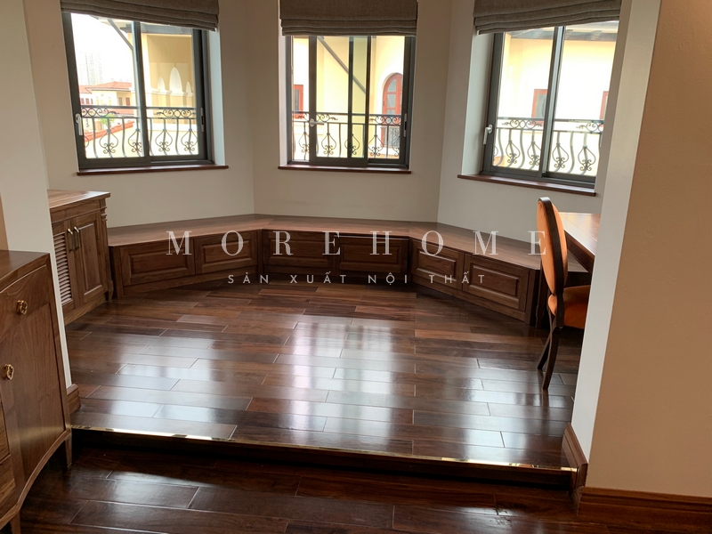 Morehome đã thiết kế và thi công một công trình nội thất đồ gỗ tân cổ điển đẹp bằng gỗ tự nhiên.